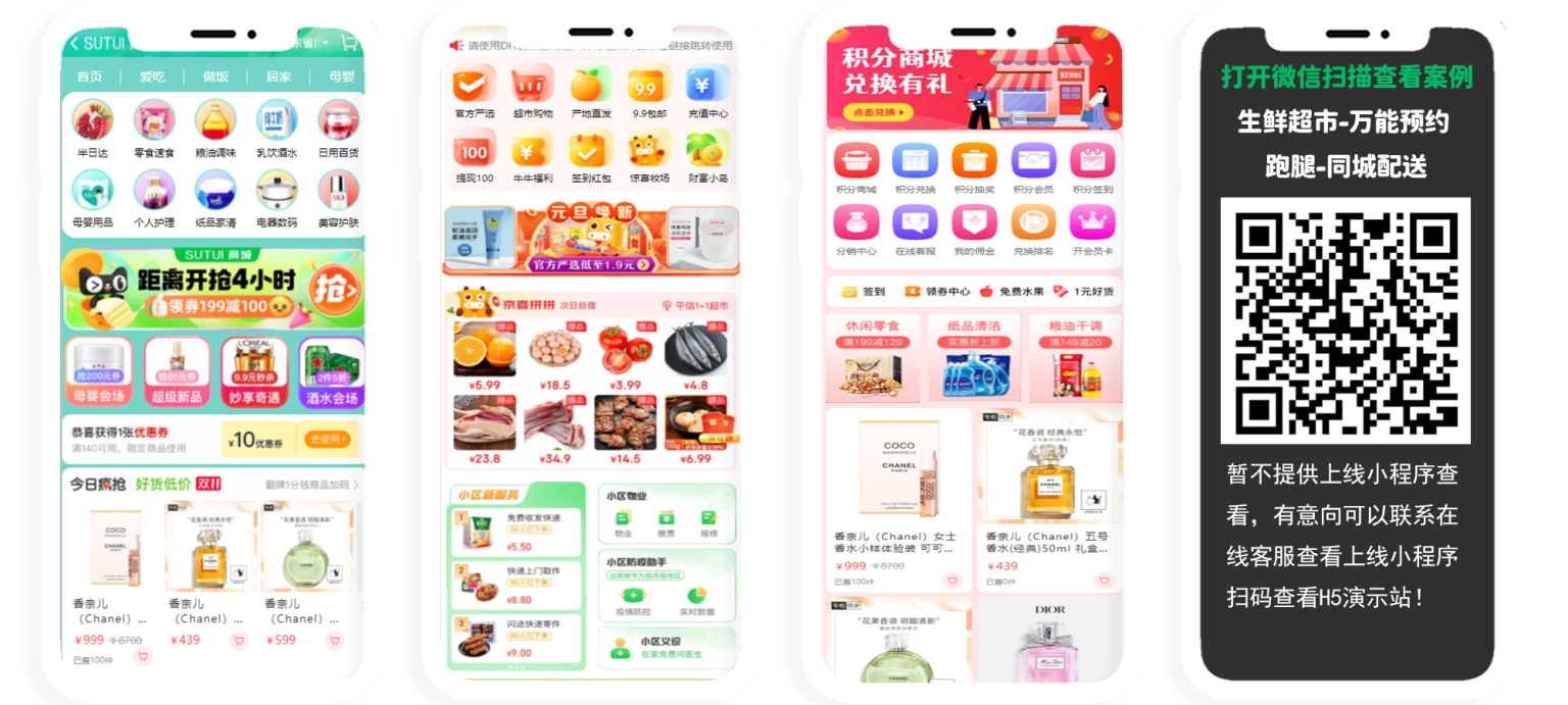 用户注册与登录:允许用户通过手机号、微信等方式快速注册和登录。商品浏览与搜索:提供生鲜商品的分类浏览和搜索功能,让用户能够快速找到所需商品。购物车与下单:支持用户将商品加入购物车, 并生成订单进行支付。支付功能:集成微信支付、支付宝支付等主流支付方式,方便用户在线支付。订单跟踪:提供订单跟踪功能,让用户能够实时查看订单状态和配送进度。 优惠券与促销活动:支持优惠券的发放和促销活动的管理,提高用户购买意愿。用户反馈与评价:允许用户对商品和服务进行评价和反馈,帮助商家提升服务质量。